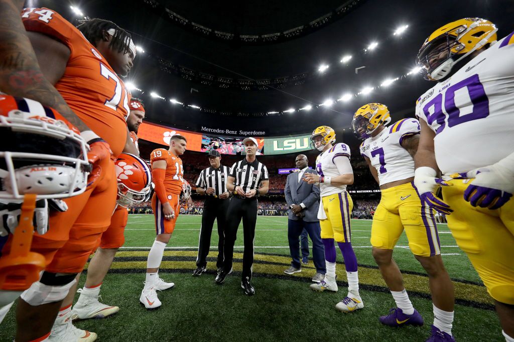 2 1230 pm ABC. Mercedes-Benz Superdome In many ways it may not matter whether youre pulling for Clemson or LSU in the 2020 College Football Playoff National Championship in New Orleans this year. CLEAR BAG POLICY A clear bag policy will be enforced at the 2020 College Football Playoff National Championship.